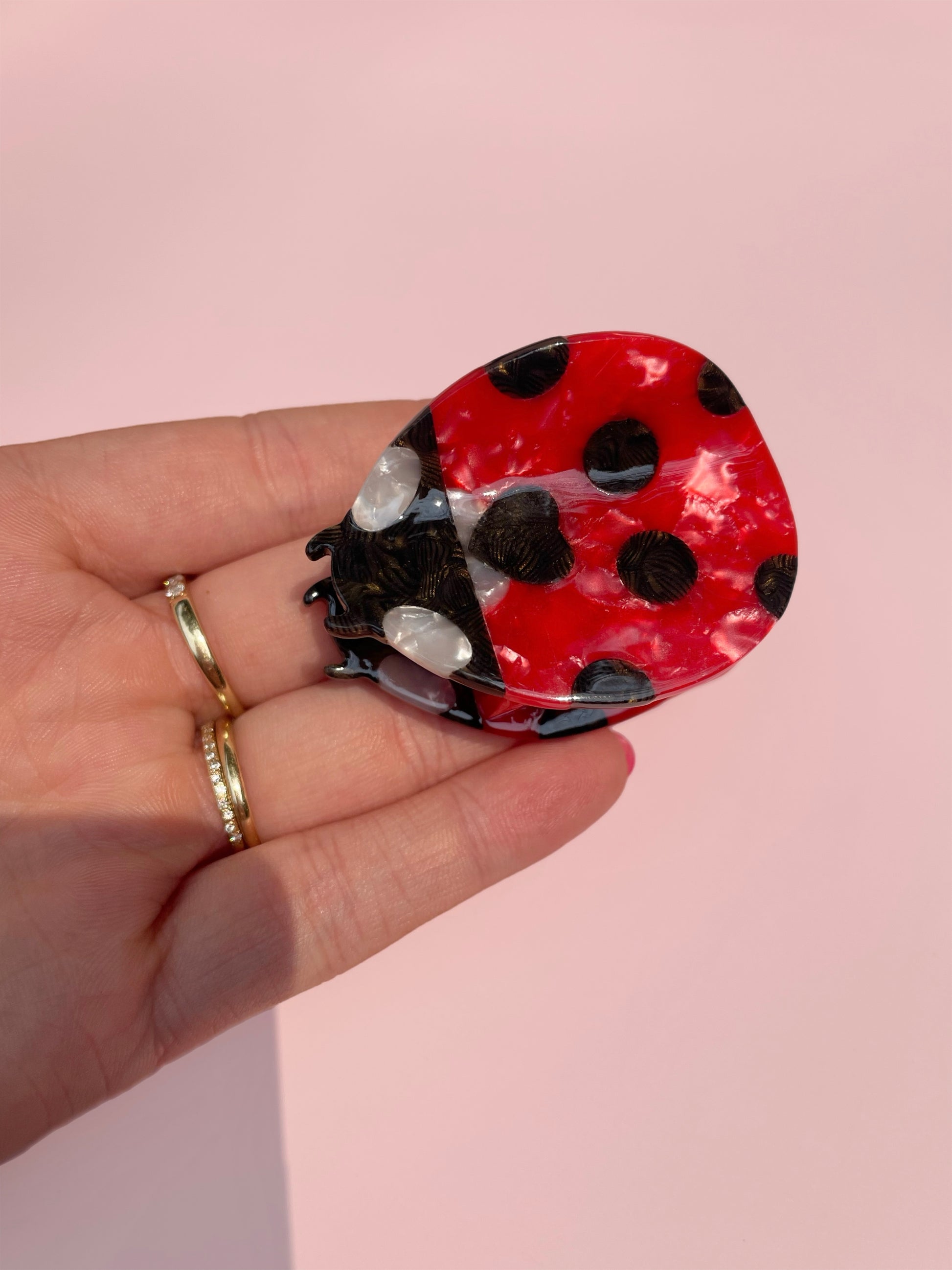 Line&Co presents the charming ladybug claw clip, crafted from cellulose acetate. This delightful accessory not only adds a whimsical touch to your hairstyle but is also believed to bring good luck. Designed for those who appreciate both style and significance, our ladybug claw clip is a perfect blend of functionality and flair.