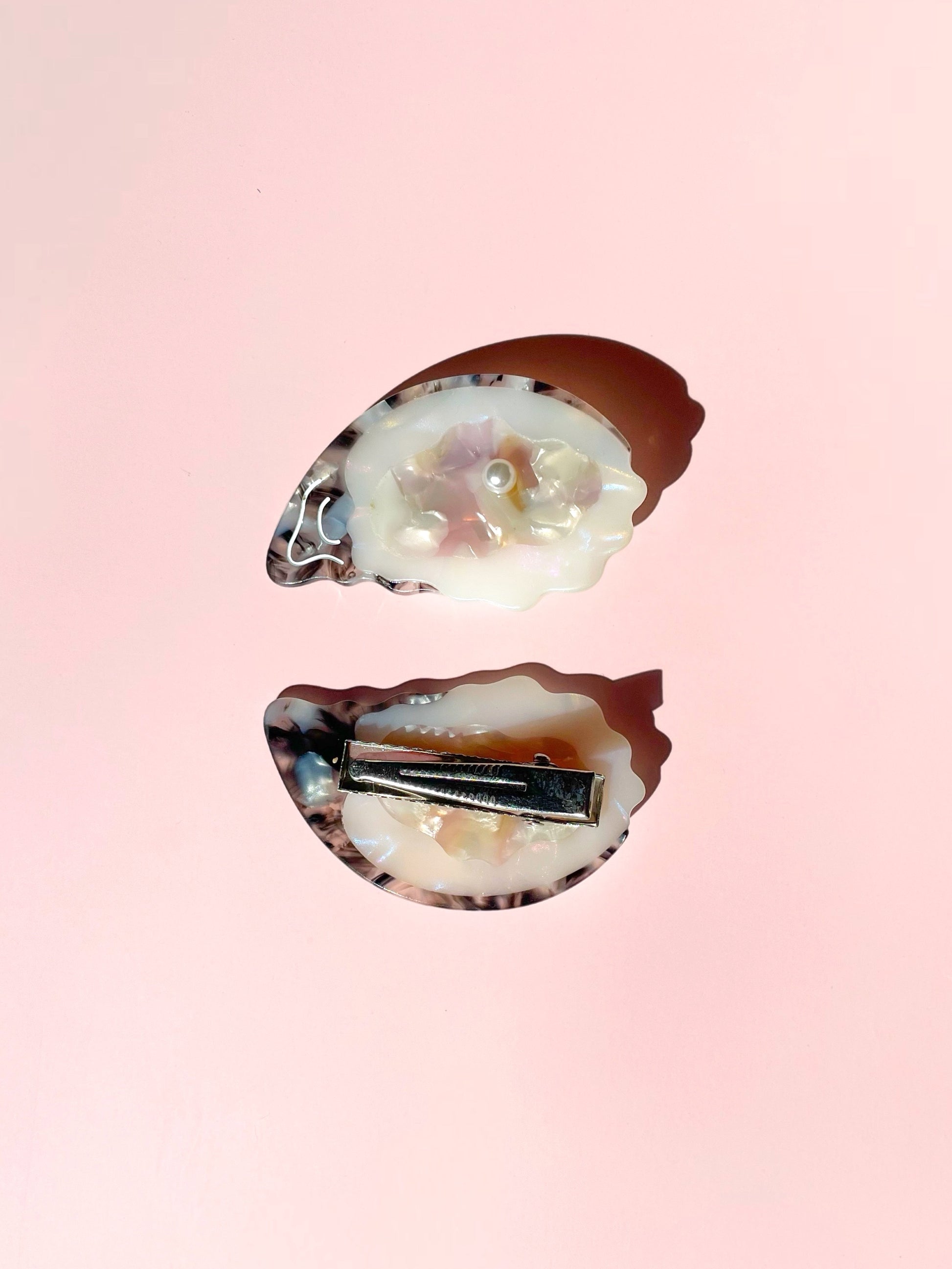 A coastal classic you can wear! This duo is crafted from pearly cellulose acetate and embellished with a Pearl detail. These petite clips add a polished, playful touch to any look. 2 inches long